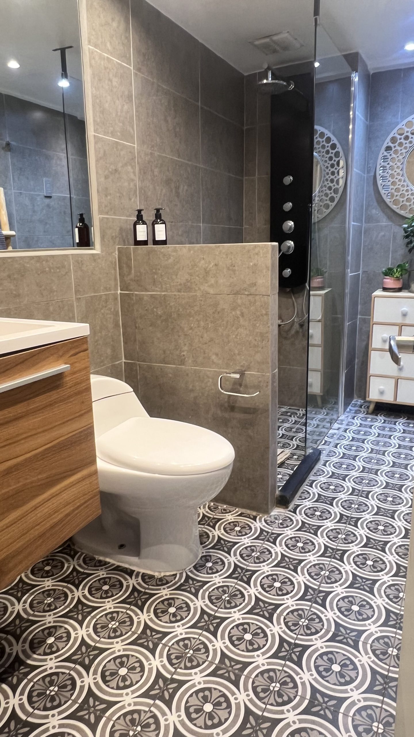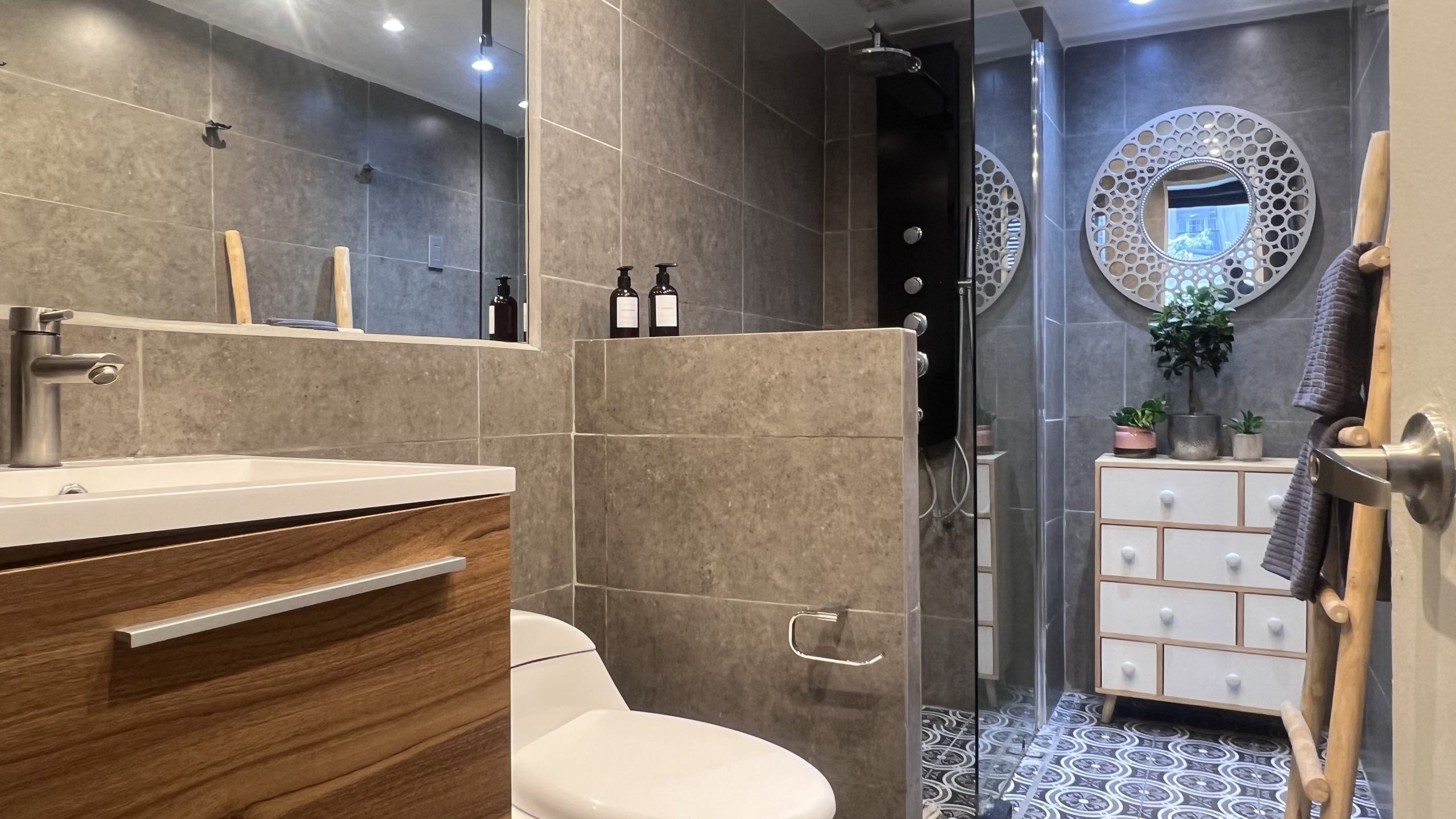 * Piso de porcelanato y piedra